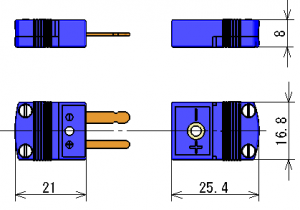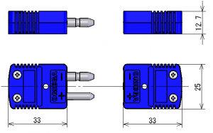 This connector uses pins of the same material as the thermocouple.